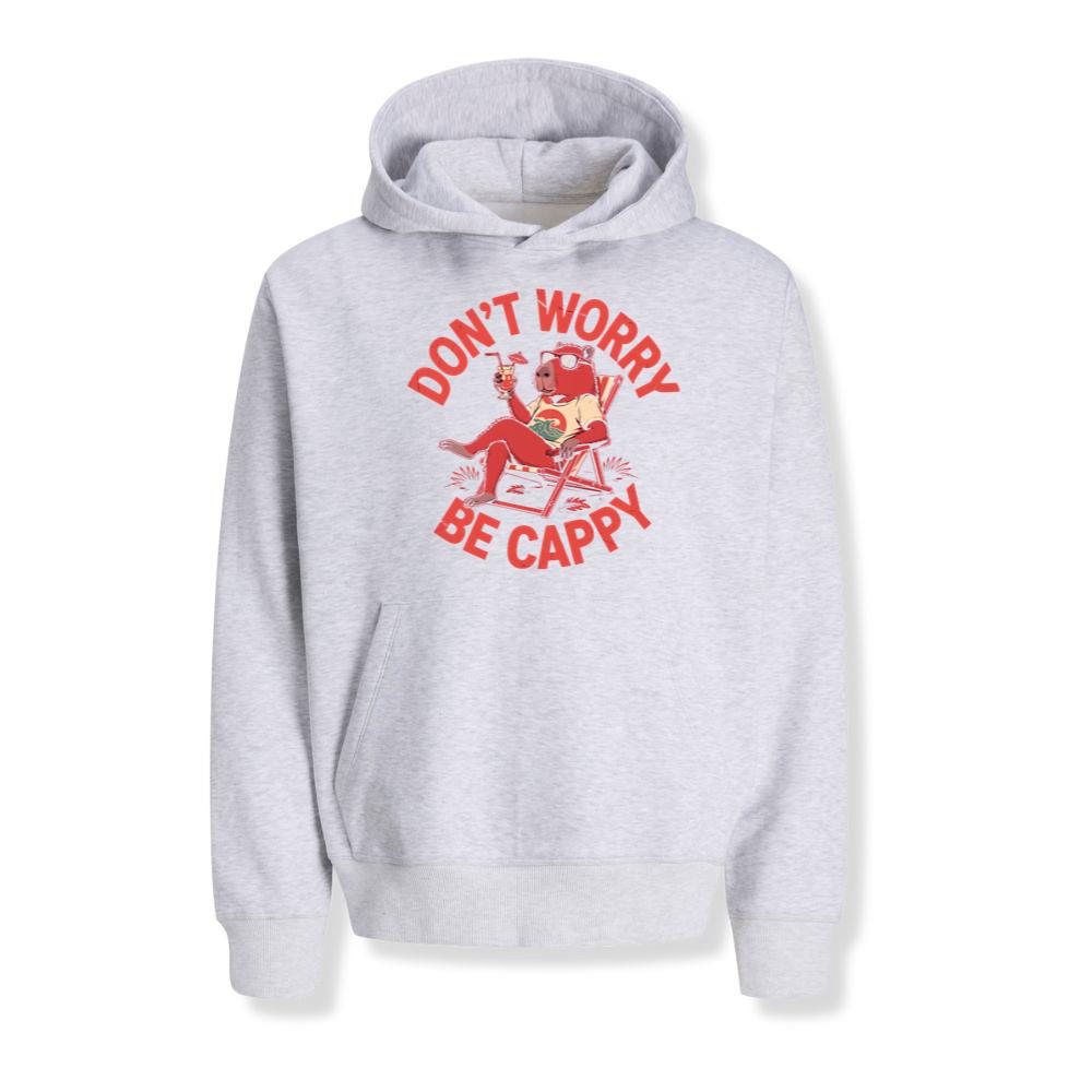 Don’t Worry Be Cappy Relaxing Dog with Drink Illustration Hoodies